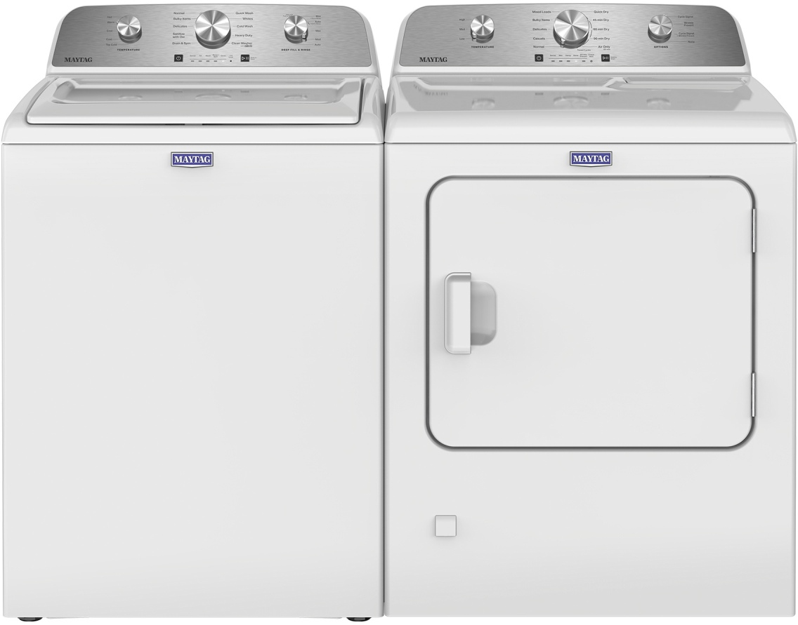 Maytag® White Laundry Pair with 4.2 Cu. Ft. top load washer and 7 Cu. Ft. electric dryer.Read More